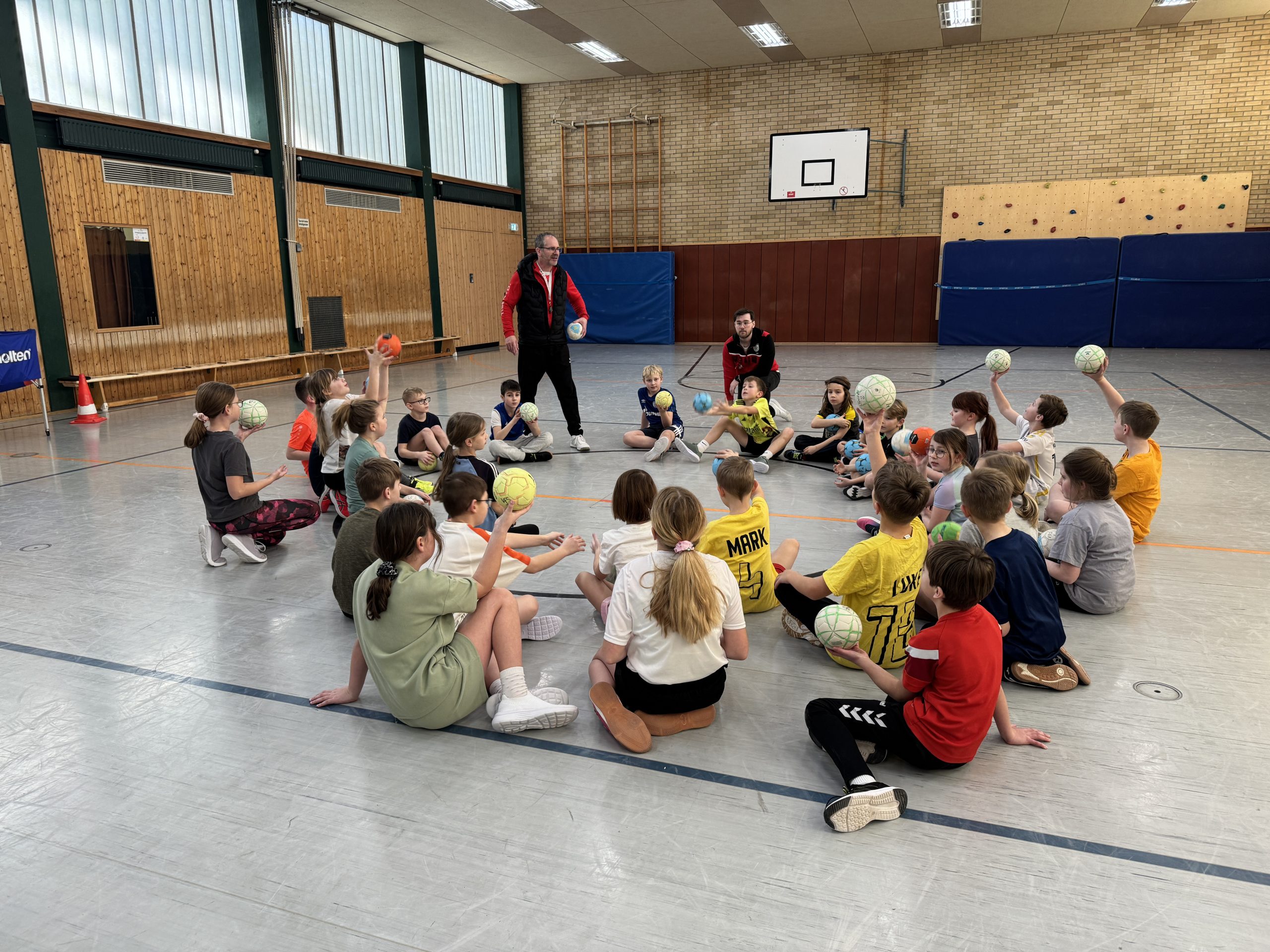Am Dienstag, den 20.Januar 2026 hatten wir mit Markus und Thilo zwei Handballer vom VfS Warstein zu Gast bei uns an der Schule, die den 2.-4.-Klässler/innen einen Vormittag lang (an aufgebauten Stationen) einige Grundlagen des Handballs vermittelten. Zum Ende bekamen die Kinder Urkunden und den „Hanniball-Pass“ überreicht. Vielen lieben Dank für euren tollen Einsatz! Wir freuen uns schon auf das nächste Jahr!