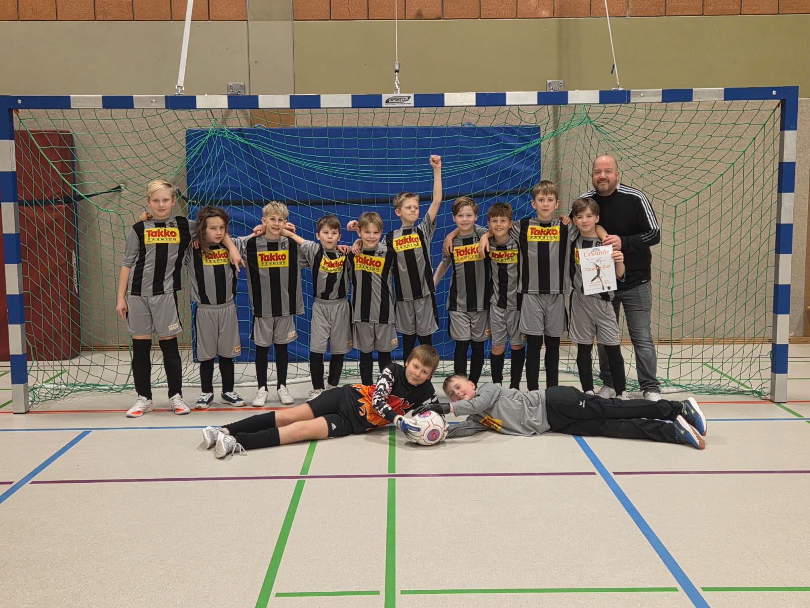 Am Donnerstag, den 22.01.26 fuhren die Kicker der Johannesschule als Titelverteidiger nach Rüthen zum Quadro-Cup 2026. Ausgerichtet wird dieses Turnier von den Sporthelfer-Anwärtern des FSG in Rüthen. Los ging es gegen die von Frau Langenekes Sohn Maximilian trainierten Belecker. Wir konnten zwar das 1:0 (Tor Jannis) markieren, ließen uns zum Schluss aber ziemlich stark hinten reindrängen und so war der Ausgleich folgerichtig und man trennte sich leistungsgerecht mit einem 1:1 gegen die Westerberg-Schüler. Im zweiten Spiel gegen die Lokalmatadoren aus Rüthen kam es zu einem spannenden Fight, der mit 0:0 gegen den späteren Turniersieger endete. Im dritten Spiel gegen Sichtigvor (und gegen die Mannschaftskollegen der Johanneskicker) verzeichneten wir einen verdienten 2:0-Sieg mit Toren von Brian und einem Traum-Hackentor von Malte. Das vierte Spiel gegen die Lioba-Schule aus Warstein konnten die gut aufgelegten Johanneskicker ebenfalls mit 4:1 (Tore durch 2x Brian, Toni und Thorin) für sich verbuchen. Selbiges erfolgte im 5.Spiel gegen Oestereiden, in dem Malte einen Hattrick erzielte und Toni den Schlusspunkt setzte. Das letzte Spiel bestritten die Fußballer der Johannesschule dann gegen die Mannschaft aus Kallenhardt. Auch dieses Spiel ging mit 3 Punkten an die Allagener (4:1 durch Luis, 2x Brian und einem wunderbaren Strahlschuss von Niklas). Mit 15:4 Toren und 14 Punkten war der Leiter der Fußball-AG Herr Durrant mehr als zufrieden und sagte den Jungs, dass er ziemlich stolz auf sie und das Gezeigte sei. Die Johanneskicker haben den Ball super laufen lassen und ein tolles Passspiel aufgezogen. Am 05.02. fährt dann eine Johanneskicker-Auswahl zu den Hallenkreismeisterschaften nach Warstein! Wir gratulieren den Kickern der Nikolausschule in Rüthen recht herzlich zum Turniersieg!