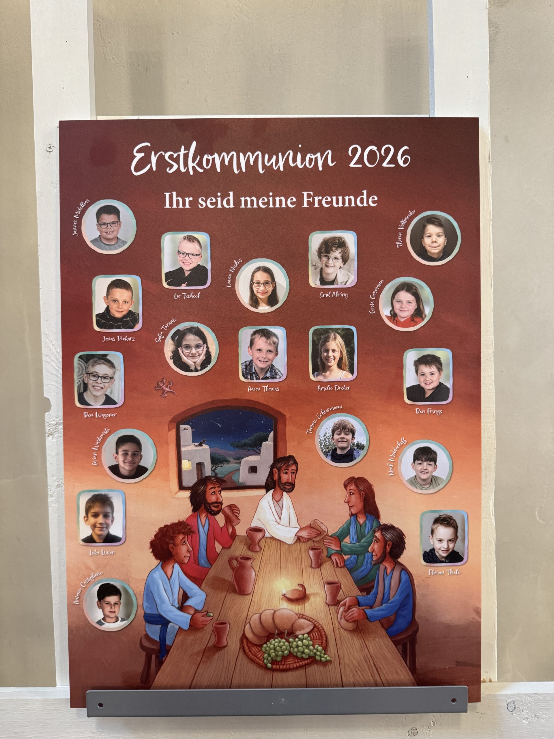 Am Montag, den 13.04.26, direkt nach den Osterferien, kamen die Johannesschüler/innen in der Kirche St.Johannes Baptist zu einem Gottesdienst zusammen, um mit den insgesamt 17 Kindern der Klassen 3a und b gemeinsam zu feiern. Wir sagen „Herzlichen Glückwunsch“ an alle Eltern, Verwandten, Freunde und natürlich an unsere Kommunionkinder!