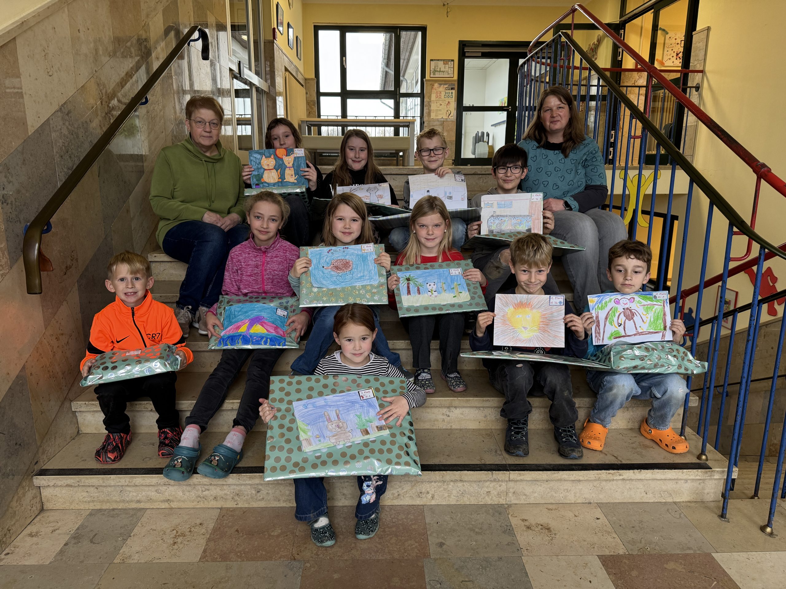 Da machen unsere Johannesschüler/innen unserem Leitmotiv „Bunte Schule mit Takt und Schwung“ doch mal wieder alle Ehre und die Schülerschaft und das Kollegium der Johannesschule sehr stolz! Am Freitag, den 28.11.25 wurden nämlich 11 Schüler/innen unserer Schule für besonders gelungene Bilder beim Malwettbewerb der Bücherei Allagen (durch Frau Hershoff)ausgezeichnet. Unter dem Motto: „Lieblingstier“ sollten die Kinder der Klassen 1-4 ihre Bilder gestalten. Während der Weihnachtsausstellung konnten die erwachsenen Besucher ihre Stimmen für die ausgestellten Bilder vergeben. Die Gewinner/innen erhielten dafür tolle Buch- und Sachpreise. Das Kollegium gratuliert allen Teilnehmern recht herzlich und bedankt sich auch für die „Trostpreise“, die von der Bücherei Dust in Warstein und Spielwaren Puppe zur Verfügung gestellt wurden!