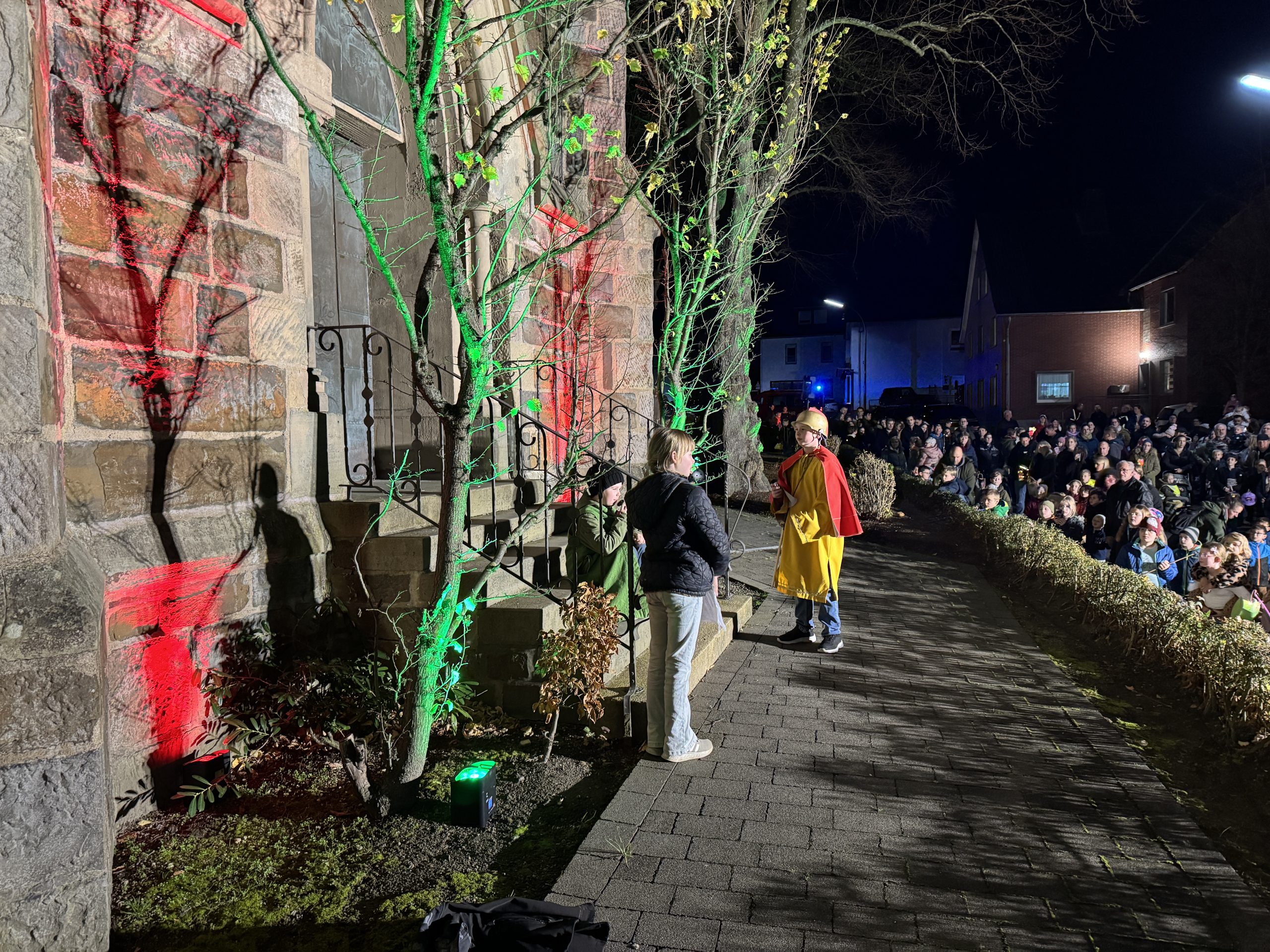 Am Freitag, den 14.11.2025 fand in Allagen der St.Martinsumzug statt. Traditionell wurde auch am Ende von diesem Umzug wieder das Martinsspiel an der Kirche aufgeführt (siehe Foto). Die Viertklässler Alexander (St.Martin), Nora (Bettler) und Theresa (Erzähler) machten ihre Sache mehr als hervorragend und führten anschließend den Tross zum Feuerwehrhaus an, wo noch die Gelegenheit bestand, eine wärmende oder kühlende Erfrischung zu sich zu nehmen.